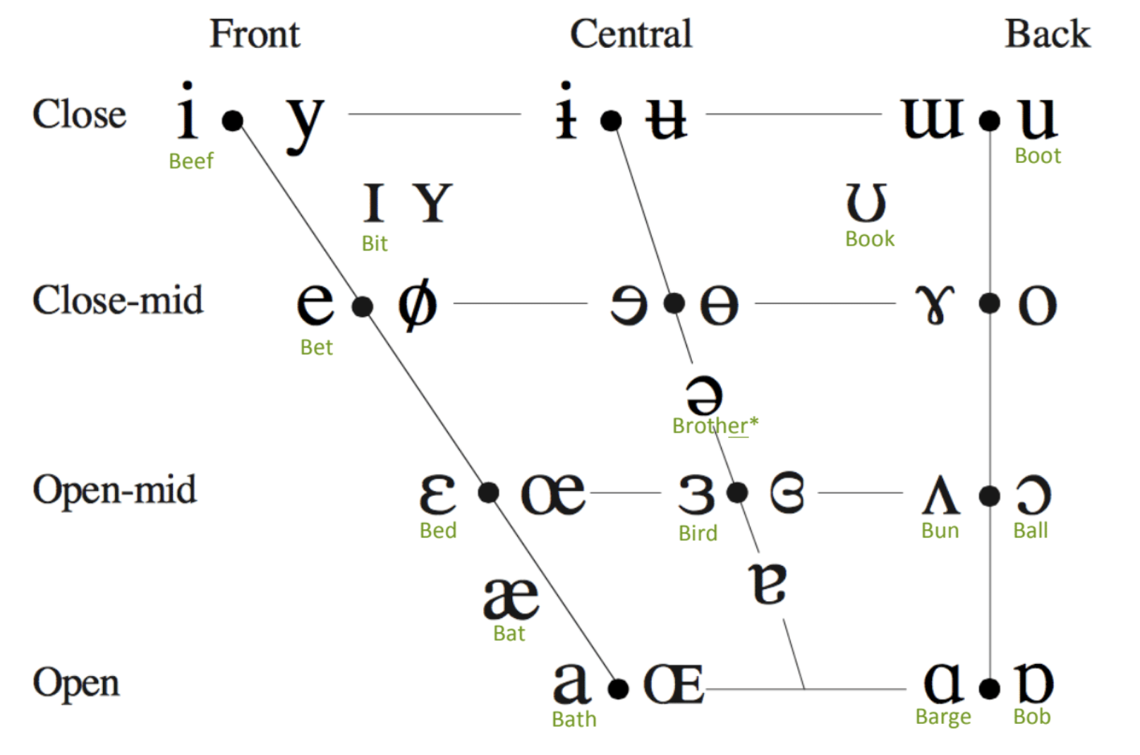 • Front / Central - a (“at”)
